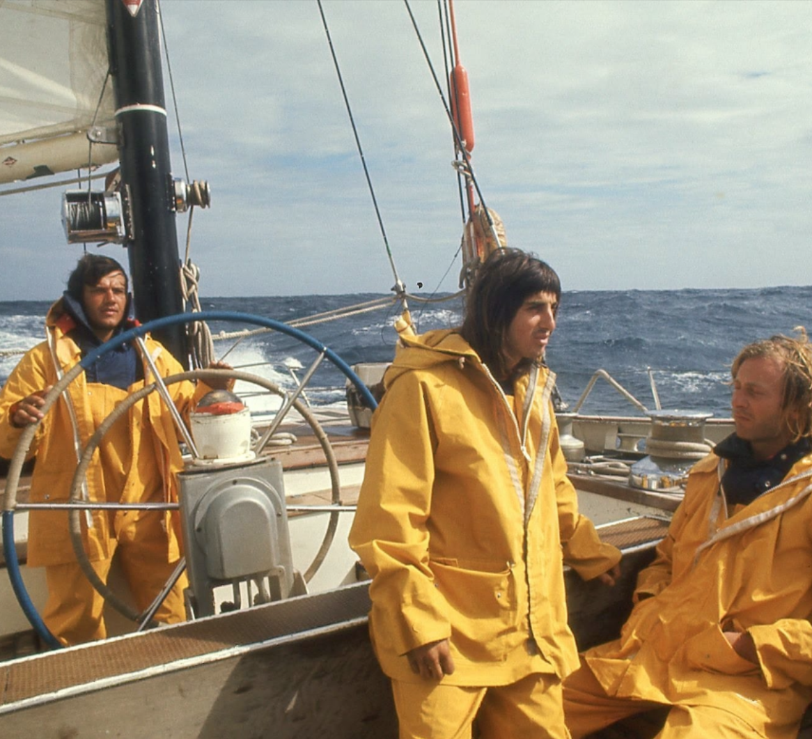 Le tout sans gilet, sans harnais et pour se protéger des embruns glacés des « 40ème » le ciré jaune Guy Cotten que les moins de 20 ans ne peuvent pas connaitre.
